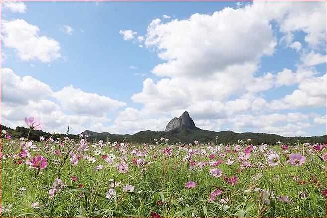 코스모스와 마이산의 환상적인 조화