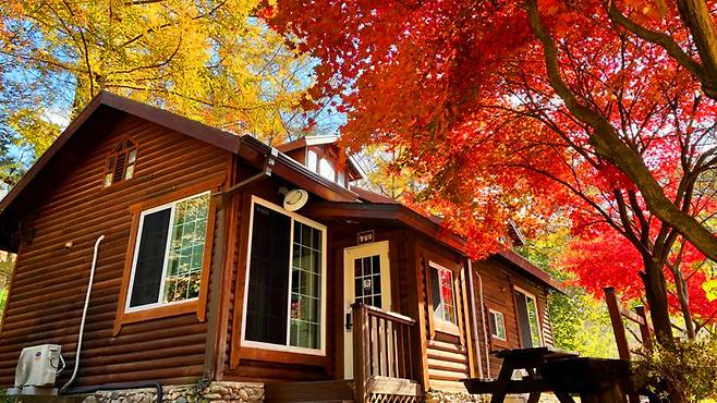 길을 걷다 보면 통나무집 숙소, 숲속 수련장, 햇살이 비치는 단풍길이 연이어 나타나며, 곳곳이 사진 명소로 손꼽힙니다.
