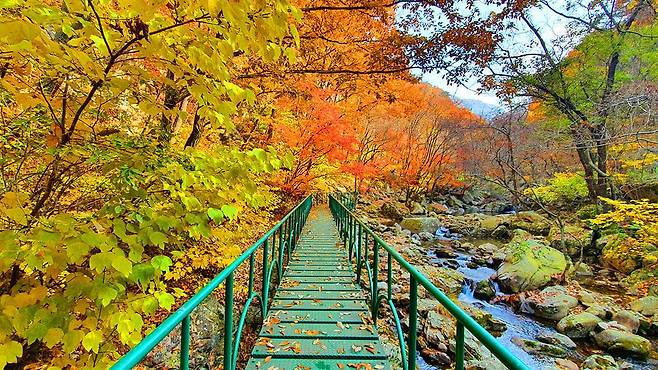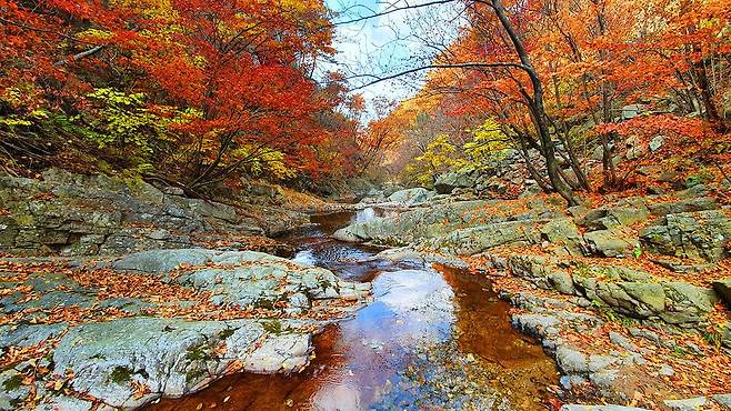 유명산 자연휴양림은 이름 그대로 ‘유명한 산 속의 휴식처’입니다. 참나무류가 우거진 천연림 지대에서는 붉고 노란 단풍이 짙게 물들며, 걸음을 옮길 때마다 색이 바뀌는 듯한 풍경이 이어집니다.