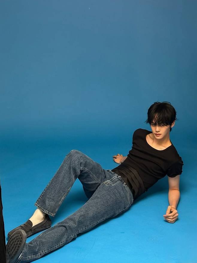 김규빈의 착장은 단순하지만 강력한 인상을 남긴다. 라운드 넥 블랙 티셔츠는 어깨선과 쇄골 라인을 자연스럽게 드러내며 남성적인 매력을 부각시키고, 딱 맞는 슬림핏은 탄탄한 팔 라인을 강조해 건강한 이미지를 연출한다. 특히 자연스럽게 흐트러진 블랙 헤어 스타일은 전체적인 룩에 청량한 무드를 더하며, 패셔너블한 ‘내 남친 같다’는 반응을 이끌어냈다.