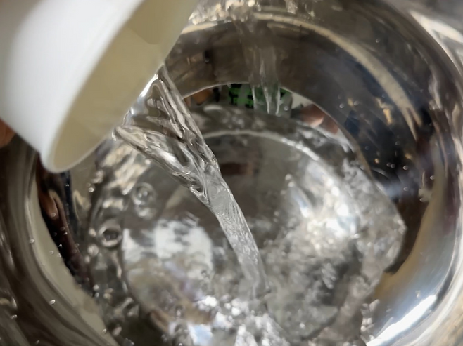 먼저 40도 물을 만들어주어야 하는데, 뜨거운 물 2 컵과 차가운 물 5컵을 준비해 섞어주세요.