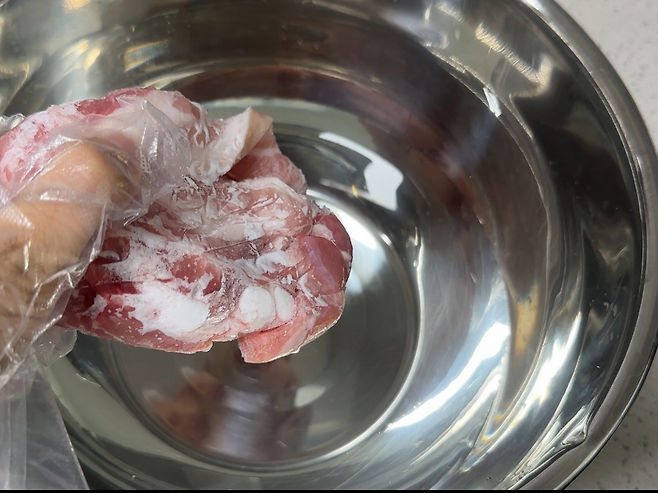꽁꽁 얼어버린 냉동 삼겹살 이대로 구울 수도 없고 기다리기도 애매한 경우 있죠?