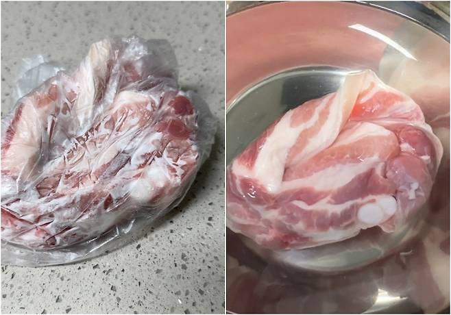 꽁꽁 얼어버린 냉동 삼겹살 이대로 구울 수도 없고 기다리기도 애매한 경우 있죠?