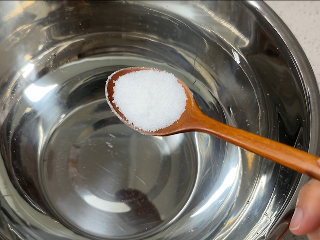 40도 물에 설탕을 2스푼 넣어 잘 섞어주세요.
