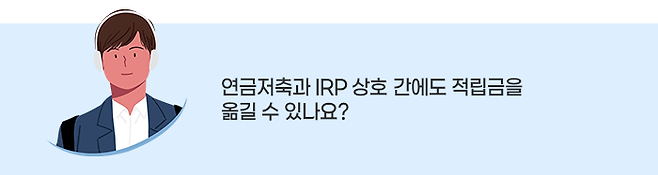 일정한 조건을 갖추면 연금저축 적립금을 IRP로 옮길 수도 있고, 반대로 IRP 적립금을 연금저축으로 이체할 수도 있습니다.