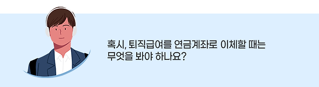 하지만 옮기기 전에 꼼꼼히 따져야 할 것들이 있습니다. 그래서, 지금부터 상황별로 연금을 이체할 때 점검해야 할 점을 살펴보도록 하겠습니다.