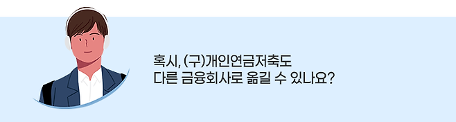 대다수 금융상품은 일단 가입하고 나면 다른 금융회사로 옮기기 어렵습니다. 하지만 오랜 기간 운용해야 하는 연금저축과 퇴직연금은 예외라고 할 수 있습니다. 연금상품은 금융회사의 서비스나 수익률이 마음에 들지 않으면 적립금을 다른 금융회사로 옮길 수 있도록 제도적 장치가 마련되어 있는데,