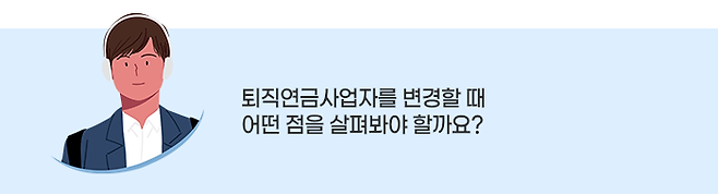퇴직연금의 경우 확정급여형(DB형) 퇴직연금을 확정기여형(DC형) 퇴직연금으로 변경하려고 하는 사람, DC형 퇴직연금 가입자가 연금을 관리해 주는 금융회사를 변경하려는 경우도 있습니다.