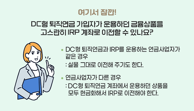 그럼, IRP 적립금을 다른 금융회사로 이전할 때 어떤 점을 살펴야 할까요?