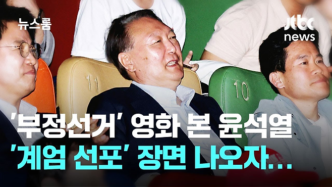 - 영화를 보다가 졸고 있는 모습이 찍히기도 했지만 비상계엄을 선포하는 장면에서 활짝 웃으면서 박수를 치기도 했다.