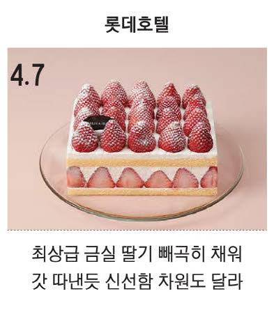 1위는 롯데호텔의 프리미엄 딸기 케이크가 차지했다. 평균 4.7점으로 1위를 차지한 롯데호텔은 4명의 기자 중 3명이 최고점을 줄 정도로 평가단을 매료시켰다. 높은 당도와 단단한 과육을 자랑하는 최상급 금실딸기 40여 개가 상단과 시트 내부에 빼곡히 들어간 점이 시선을 끌었다. 박윤균 기자는 "금실딸기의 크기부터 가장 컸으며, 표면이 제일 탄탄하고 빛깔이 선명해 신선도 측면에서 가장 만족스러웠다"고 평가했다. 권오균 기자는 "일반 베이커리와는 수준 자체가 다르다. 지인의 산지 농장에서 갓 따낸 딸기를 맛보며 느꼈던 그 선연한 신선함이 케이크 위에 그대로 재현됐다"고 극찬했다.