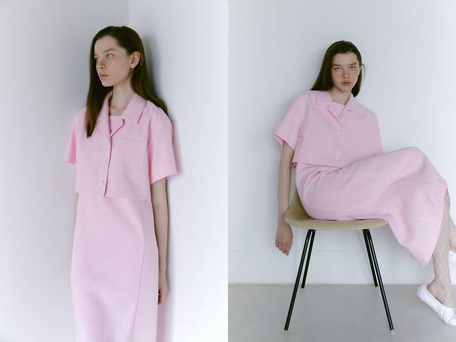 매력적인 색감의 트위드 셋업은
