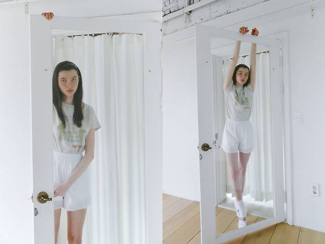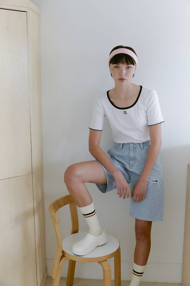 넥 라인이 시원시원한 스퀘어넥 티셔츠와