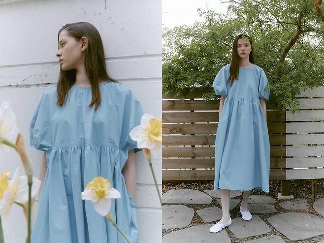 전체적으로 볼륨감이 느껴지는 여유 있는 핏의 원피스라