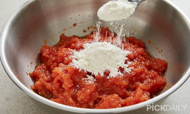 토마토에 함유된 라이코펜은 자외선으로 인한 색소 침착을 완화하는 데 효과적이다. 여기에 밀가루를 섞어 꾸덕한 제형으로 만들면, 기미 완화와 함께 각질 정리까지 가능한 '1석 2조' 팩이 완성된다. 토마토즙 1큰술과 밀가루 1큰술을 잘 섞어 얼굴 전체에 도포하고, 10~15분 후 미온수로 가볍게 헹궈준다. 이후 보습제를 발라 마무리해준다.