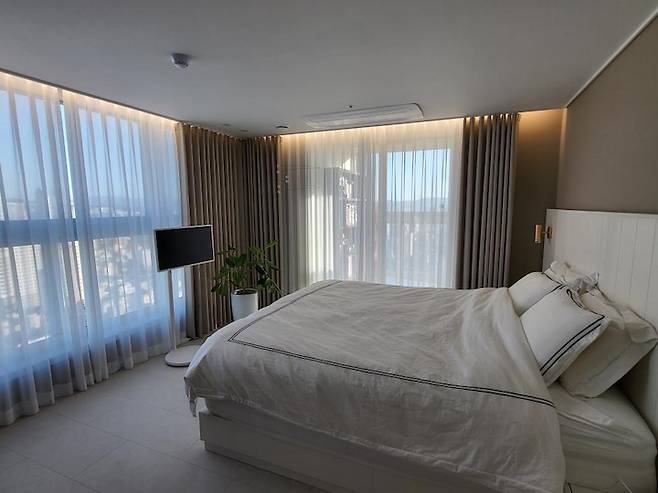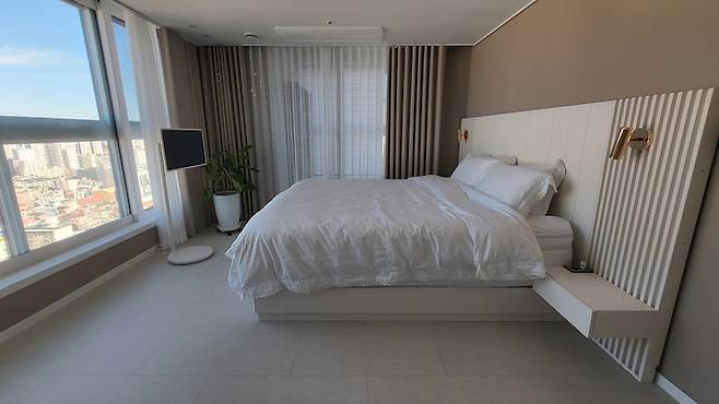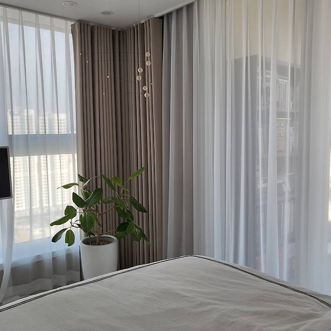 침대는 키코디자인에서 폴로 호텔식 침대를 구매했고, 매트리스는 시몬스에서 가장 큰 사이즈인 GK사이즈로 숙면을 중요하게 생각하는 남편을 위해 블랙라인의 매트리스를 선택했습니다.