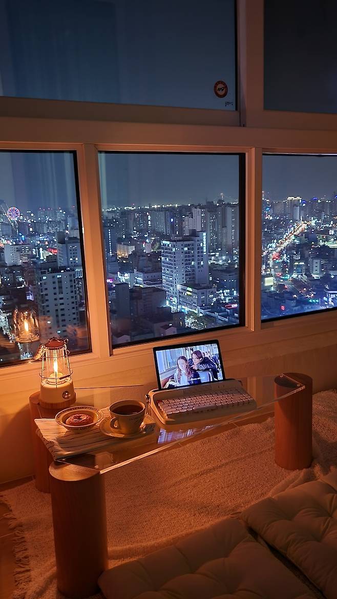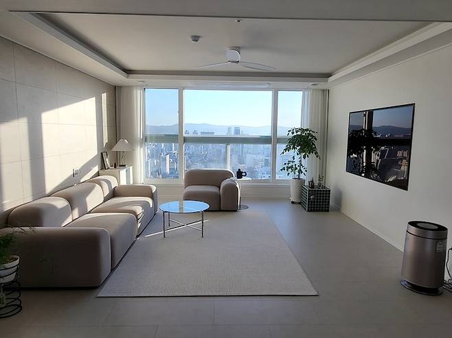 저희 집은 35평 4bay구조의 주상복합 아파트로 방 3개, 욕실 2개, 팬트리가 있습니다. 거실을 포함한 모든 방에 통창이 있고 고층에 위치하여 시내와 하늘이 훤히 보이는 시티 뷰를 가지고 있어요. 덕분에 이사 온 후로 집에서 하늘 사진을 찍는 게 취미 아닌 취미가 되었답니다.