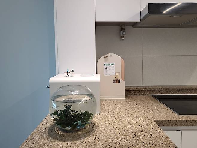 어항에는 구피들이 옹기종기 살고 있어요. 신혼 때부터 친정에서 키우던 아이들을 몇 마리 데려와 키우기 시작해서 지금껏 쭉 같이 살고 있네요.