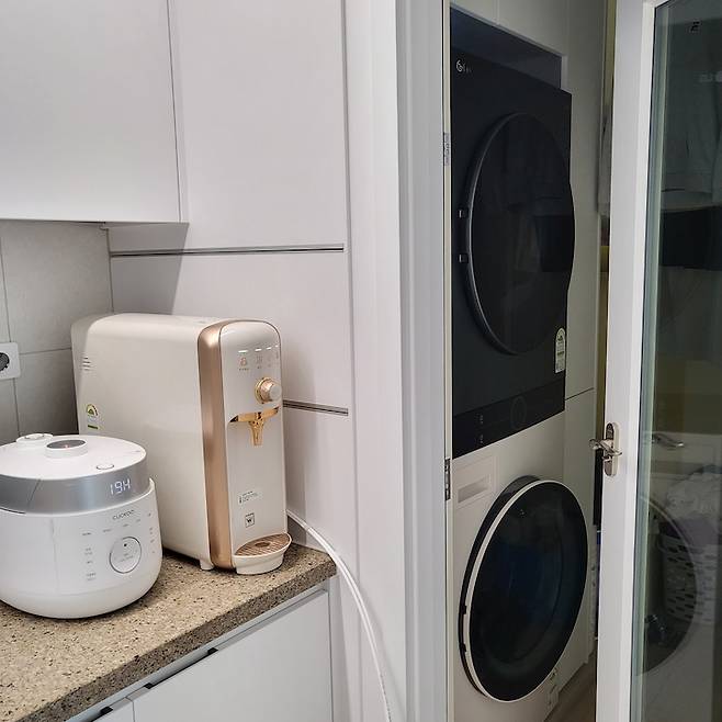 주방 옆에는 세탁실이 위치하고 있답니다. 이곳에도 수납을 위해 장을 짜 넣어주었어요.