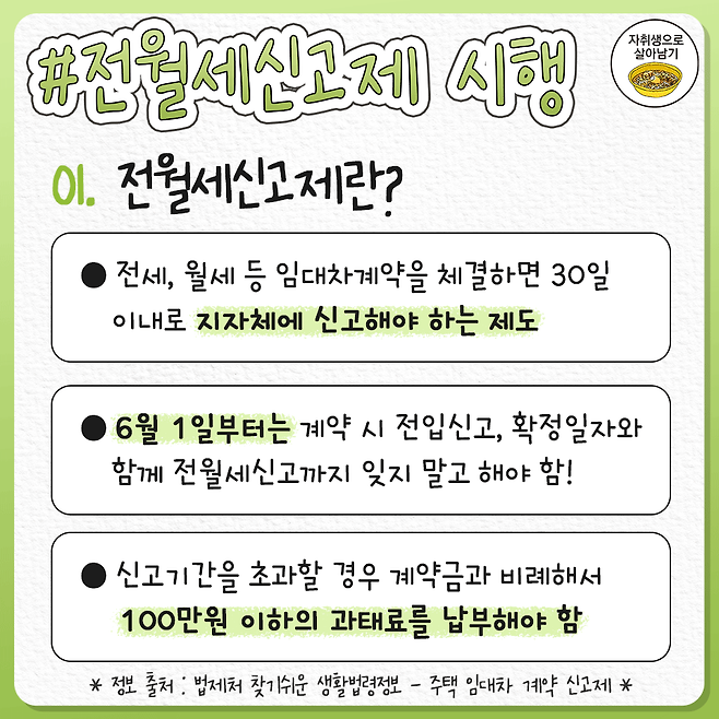 * 전월세신고제는 23년 5월 31일부로 계도기간이 종료되고 단속이 시행될 예정이었으나 5월 16일 오후 국토교통부에서 계도기간을 24년 5월 31일까지로 1년 더 연장하는 것으로 발표했습니다.