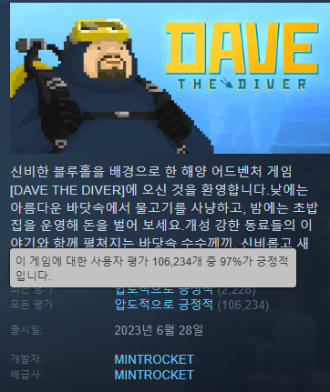 출시 직후 데이브 더 다이버는 스팀 글로벌 판매 1위를 기록하며 강렬한 데뷔를 알렸다.