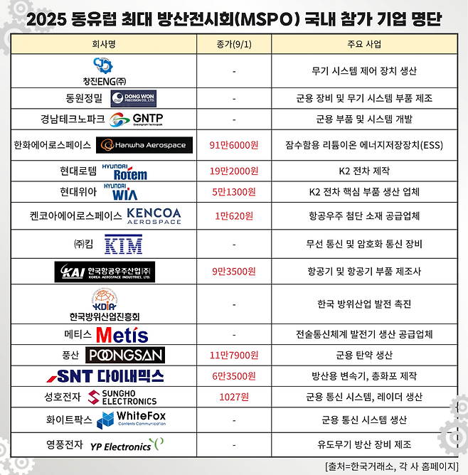 브레이크 없는 질주 K-방산…MSPO 개막 하루 앞두고 참가 기업 주가 꿈틀