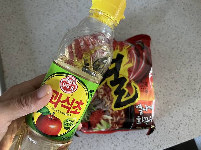 라면에 식초를 넣는다고? 뭔가 국물에 시큼한 맛이 날 거 같아 의아합니다.