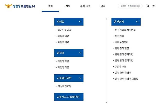 이처럼 신호위반으로 부과된 과태료나 범칙금은 실시간으로 바로 조회되지는 않는다. 적발일로부터 통상 1~2일이 지난 후 경찰청 시스템에 등록되며, 이후 이파인 홈페이지에 접속해 로그인한 뒤 '조회' 메뉴에서 차량번호와 주민등록번호를 입력하면 확인할 수 있다.