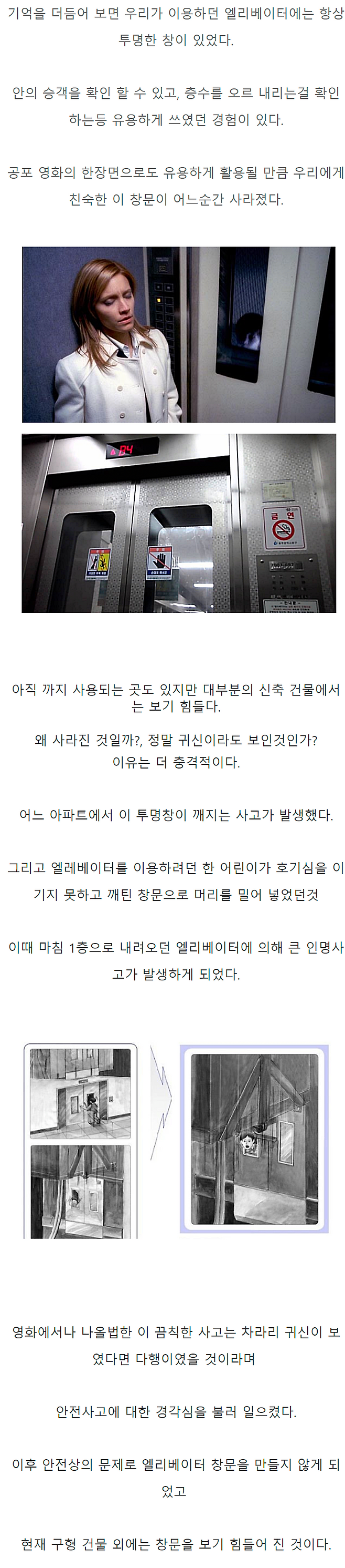 엘리베이터 문에 투명 창문이 사라진 이유