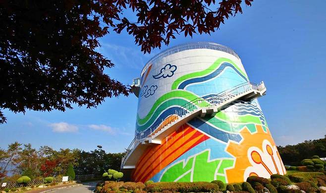 전북 무주군 적상면 북창리 끝자락, 덕유산국립공원 안에는 독특한 형태의 전망대가 자리하고 있다. 무주 양수발전소의 상부 저수지인 적상호 북쪽에 세워진 이 전망대는 얼핏 보면 굴뚝처럼 보이지만 사실은 발전소의 중요한 설비인 ‘조압수조’다.