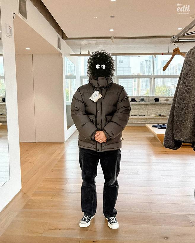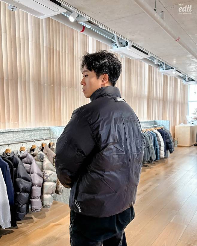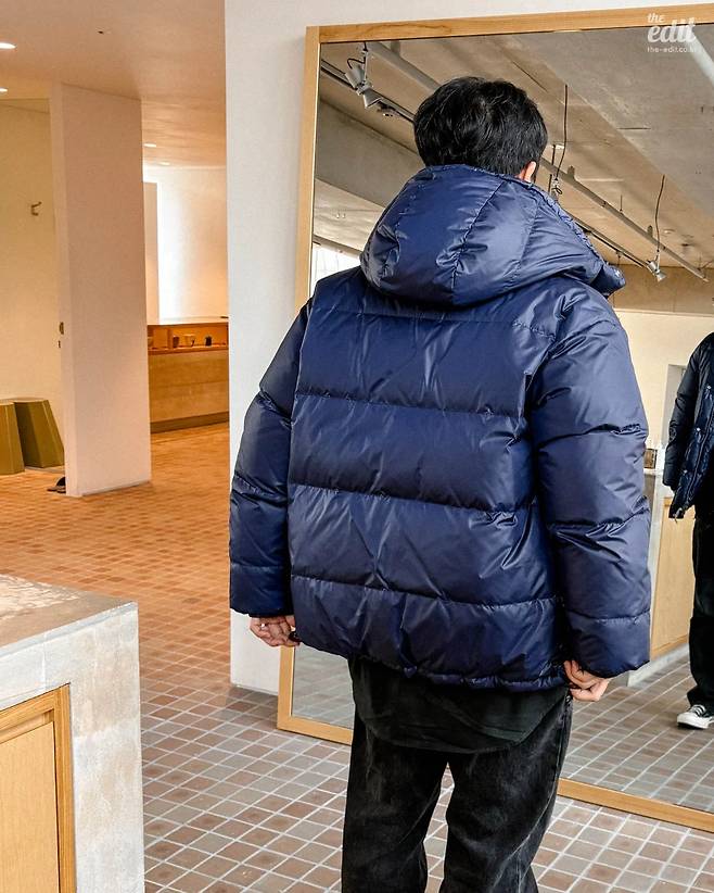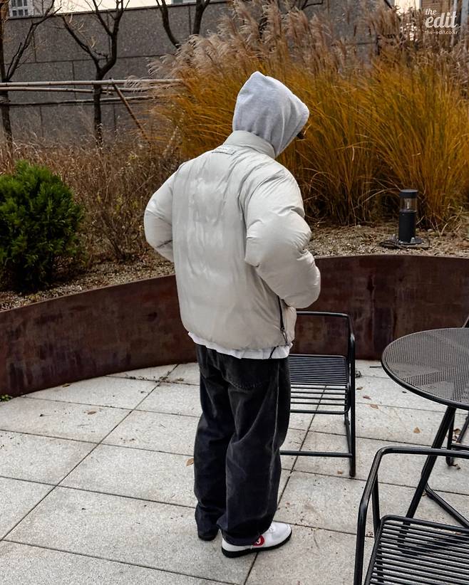 패딩도 여러 종류가 있지만, 제가 입어 본 제품은 스포티한 무드를 덜어내서 단정한 차림에도 어울릴 법한 디자인이에요. 일반적인 패딩이 셔츠 위에 입기 애매하다면, 이 제품은 오히려 셔츠 위에 입었을 때 더 중후하고 멋있게 느껴집니다.