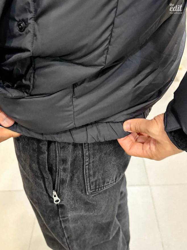 어차피 패딩은 지퍼를 잠그거나 열거나 둘 중 하나입니다. 막상 입어 보면 딱히 투웨이로 연출할 상황이 많지 않고 그렇게 연출하는 사람도 거의 못 봤어요. 투웨이가 이제 기본값이 된 듯한데, 막상 생활하다 보면 패딩에 한해서는 그 디테일이 꼭 필요하지 않을 수도 있습니다.