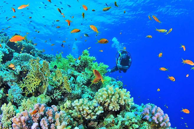 투명한 바닷속에서 액티비티 등을 즐길 수 있습니다.
