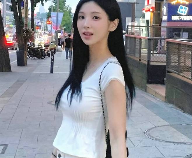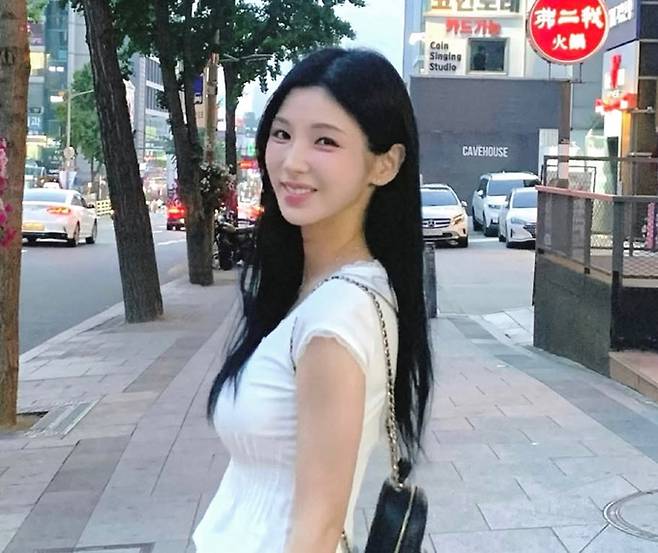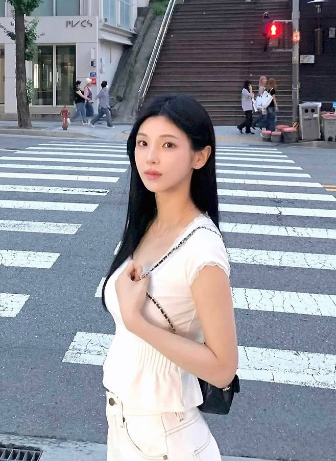 강다은은 26일 자신의 채널에 “서울”이라는 글과 함께 한여름 도심 속 거리에서 청순한 매력을 드러낸 사진을 공개했다.