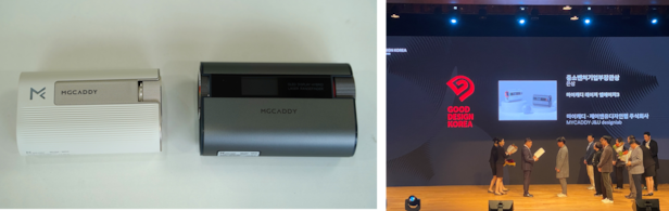 기능은 거의 동일하다. “기중 레이저 골프 측정기의 기능은 모두 갖췄습니다. 장애물로 핀이 잘 보이지 않아도 핀을 찾아내는 ‘핀 시커 모드’와 거리는 물론 경사도와 온도, 습도까지 고려해 거리를 표시하는 ‘슬로프 모드’를 탑재해 여러 제약 속에서도 정확하게 거리를 측정합니다. 타사 제품에 없는 기능도 있습니다. 바로 에이밍 기능입니다. 그린의 방향을 인식해 내게 맞는 타석 방향을 알려주기 때문에 1타는 줄이고 시작할 수 있어요. MH3의 디자인적 가치도 계승했어요. MH3는 우수한 디자인으로 굿디자인어워드에서 중소벤처기업부 장관상을 받은 바 있는거든요. 무게도 113g으로 아주 가볍습니다.”