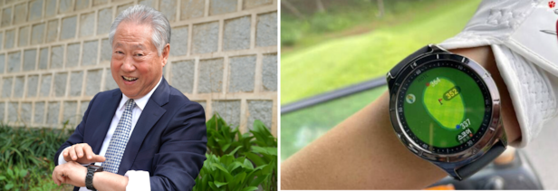 “밴드를 포함한 무게가 25g으로, 일반 스마트워치의 절반에 불과하죠. 마찬가지로 인공위성을 통해 GPS를 실시간으로 수신해 전국 골프장의 코스를 보여줍니다. 그린의 경사 높이, 그린 앞·뒤, 그린 중앙까지 남은 거리를 표시해주죠. M1, M2보다 기능은 적지만 필요한 정보는 다 보여줍니다. 깔끔하고 군더더기 없는 것을 선호하는 소비자에게 인기죠.”