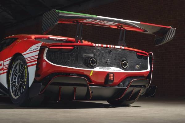뒷범퍼 또한 296 GTB를 기반으로 재설계되었다. 차량 외부의 세로 방향 윤곽은 항력을 줄이기 위해 최적화되었다. 측면에 추가된 두 개의 통풍구는 뒷바퀴 아치에서 나오는 공기를 차의 뒷부분으로 배출한다. 이를 통해 후면 차체 하부의 효율성을 최적화하고 전체 항력을 감소시켜 공기역학 효율성을 전반적으로 향상시켰다.