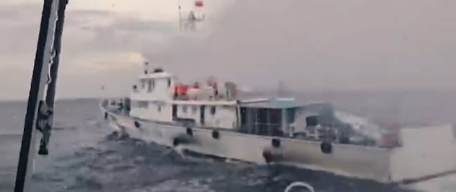 중국 해경선의 물대포 공격으로
