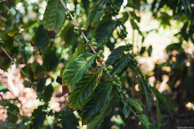 빨갛게 익은 열매 껍질 까면 커피콩같은게 나오는데 미끌미끌 거립니다. 입에 넣으면 달달하구요
