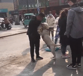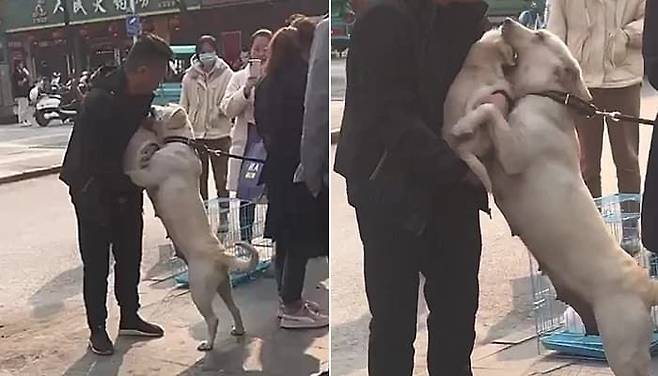 한 남성이 새끼 강아지를 품에 안자, 어미개가 필사적으로 매달리며 가지 말라고 애원하는 모습이 포착되어 보는 이들의 마음을 아프게 하고 있습니다.