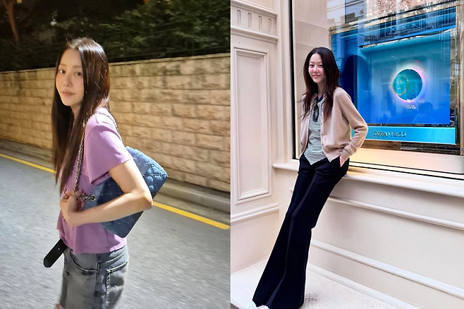 이너로 흰 티셔츠를 매치해 레이어드 스타일링을 완성, 활동적인 분위기와 함께 청량한 매력을 동시에 보여줬다.