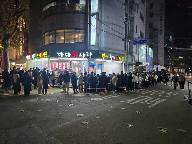 바다회사랑 2호점이 2층까지 있어서 그나마 회전률도 빠르고 웨이팅도 좀 짧으니 거기서 봅세