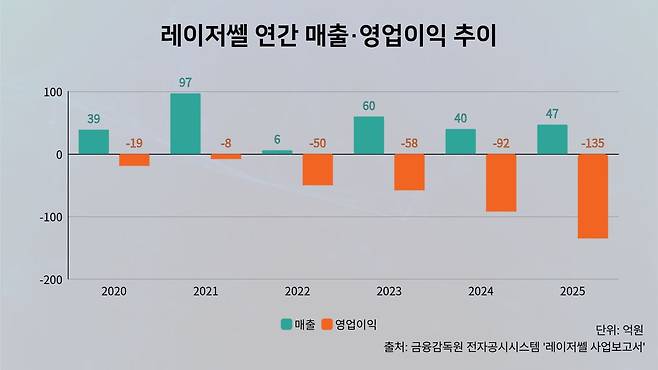 다만 실적 흐름은 아직 녹록지 않다. 레이저쎌의 지난해 연결기준 매출은 47억원으로 전년(40억원) 대비 16.7% 늘었다. 하지만 같은 기간 영업손실은 135억원, 당기순손실은 162억원으로 적자폭이 확대됐다. 매출원가가 71% 이상 늘고 판매관리비도 전년보다 증가하며 매출 증가가 손익 개선으로 이어지지 못했다.