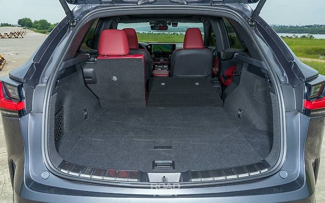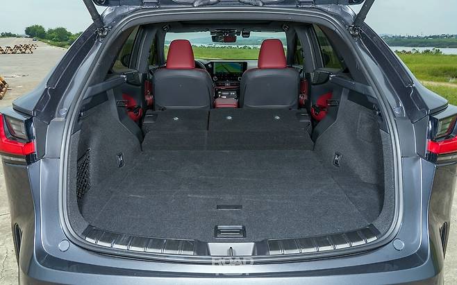 먼저 트렁크 비교부터. 적재 기본용량은 VDA 기준 ES가 454L, NX가 520L로 제법 차이가 있다. 그런데 레이저 측정 장비로 비교하니, ES가 더 나은 부분도 있었다. 가령, 트렁크 깊이(2열 등받이부터 트렁크 끝단까지)는 100㎜ 이상 넉넉하다. 좌우 너비 또한 ES가 한층 여유롭다. 전고가 높은 NX의 트렁크가 종합 용량은 앞서지만, 캠핑보다 골프를 즐기는 운전자라면 ES가 더 나은 선택일 수 있다.