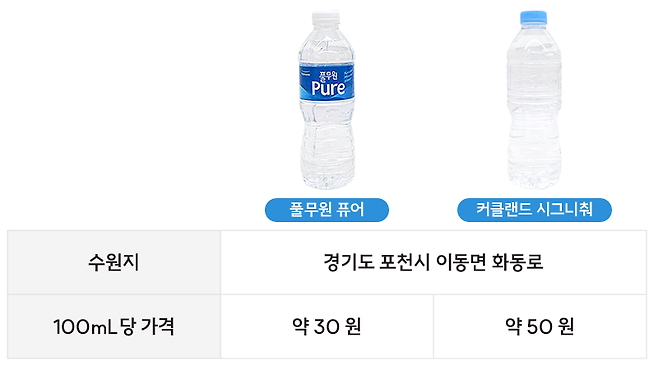 예시의 두 제품을 보면, 수원지는 경기도 포천 이동면으로 동일한데 가격은 20% 이상 차이가 납니다.