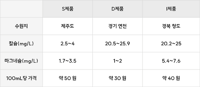 미네랄 함량, 물 맛, 원가 차이 등은 제품 가격 차이와 큰 관계 없음