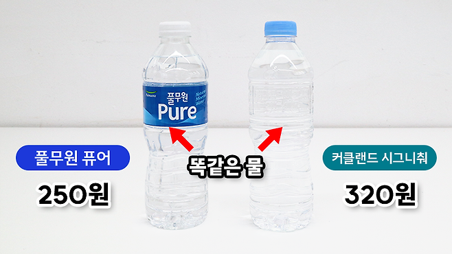 알고보면 똑같은 물인데 브랜드에 따라 더 비싸지고 더 저렴해지기도 한다는 사실, 알고 계셨나요?