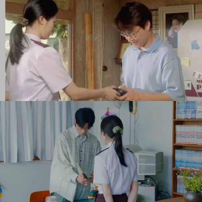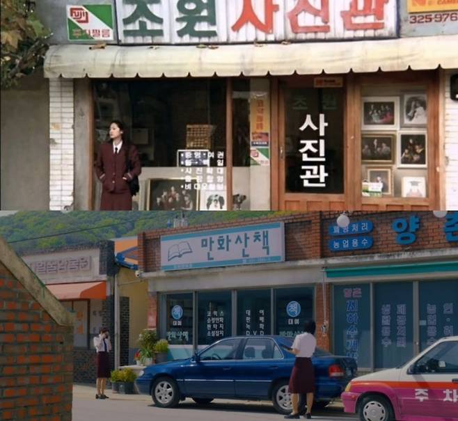 영화에서는 사진관 주인과 손님으로 만나지만, 뮤비에서는 책방 주인과 손님으로 관계가 설정된 점이 흥미로웠어. ‘8월의 크리스마스’ 덕분에 군산의 명소가 된 초원사진관이 뮤비에서는 ‘만화산책’ 책 대여점으로 변신! 📚 아이유 ‘네버 엔딩 스토리’ 뮤비에서도 초원사진관이 잠깐 등장하는데, 뭔가 뭉클했어… 가게 창문으로 누군가를 바라보는 장면은 진짜 명장면이지.