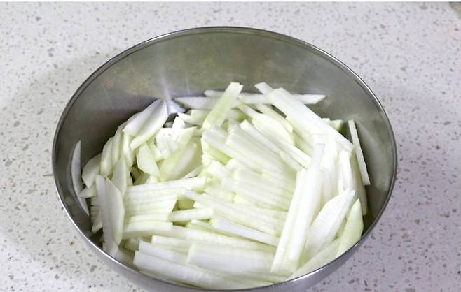 결대로 썰어 아삭함을 살리세요