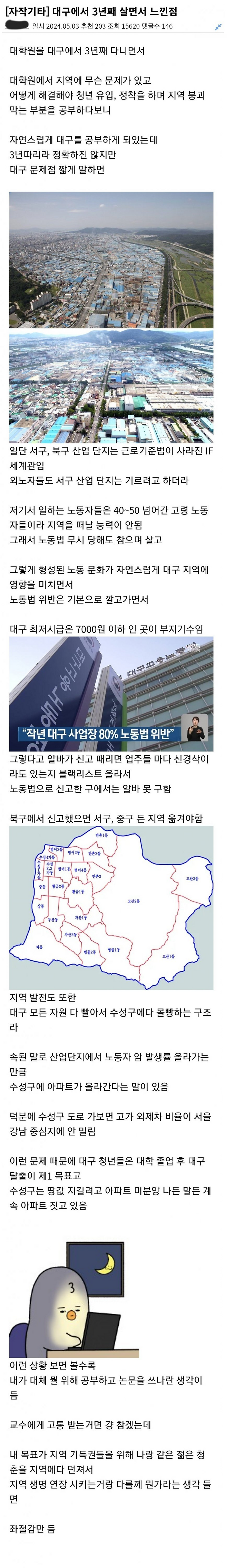 대구의 현실을 한탄하는 대학원생